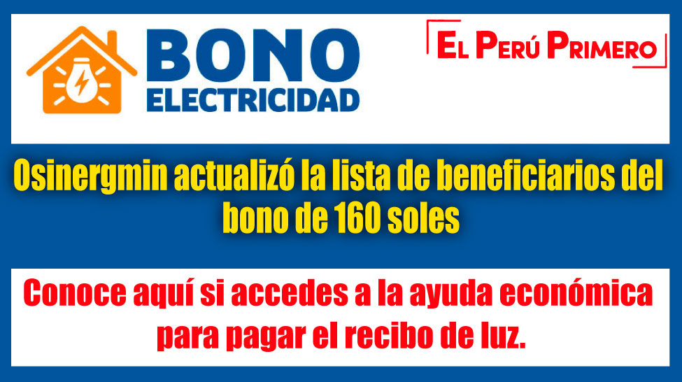 El padrón de beneficiarios del Bono de Electricidad de 160 soles ha sido actualizado por Organismo Supervisor de la Inversión en Energía y Minería (Osinergmin). De esta forma, se incorporaron nuevos usuarios residenciales que podrán acceder al subsidio que busca cubrir los recibos de luz eléctrica de marzo a diciembre del 2020.